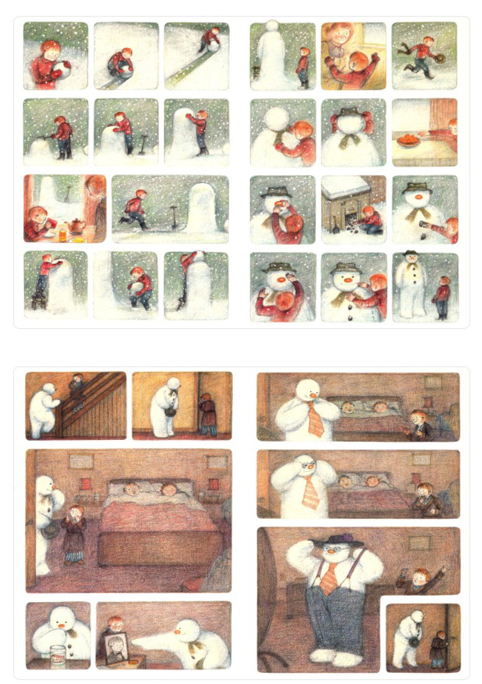 "The Snowman"은 겨울날 눈이 내린 마을에서 한 소년이 눈으로 만든 눈사람이 살아 움직이기 시작하는 이야기입니다. 두 친구는 함께 놀며 눈사람이 경험하는 모든 순간을 함께하게 되는데요. 책은 말이 없는데도 감정을 전하는 그림으로 어린이들의 마음을 완벽하게 전달합니다.