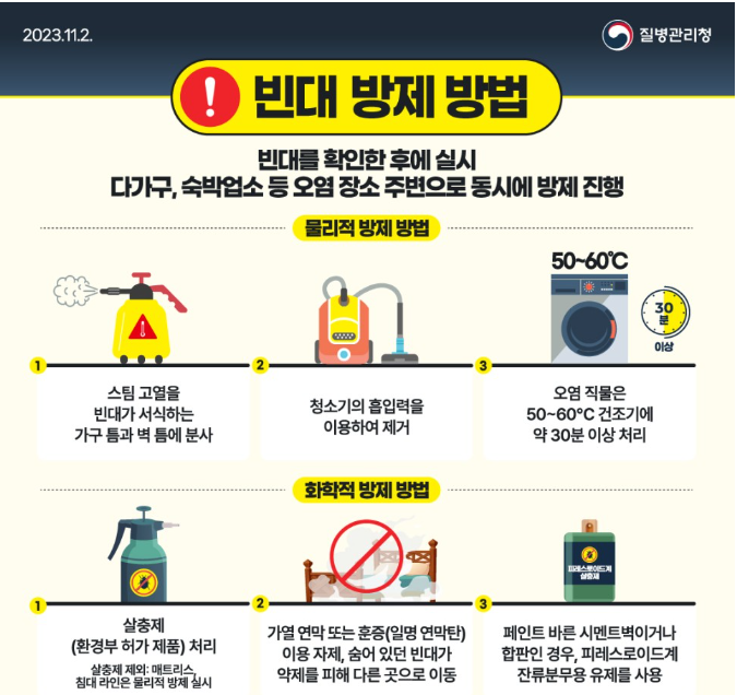 • 방역을실시 : 빈대가 침입한 경우, 방역 업체를 통해 전문적인 방역을 실시하는 것이 좋습니다.