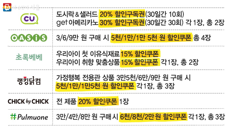 - 3월분 할인쿠폰 신청은 2월 20일 0시부터 27일 23시 59분까지 8일간 선착순으로 가능