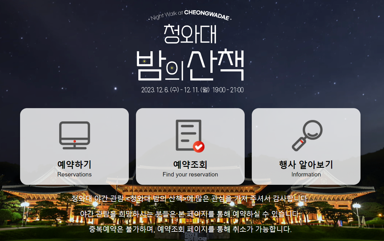 청와대 밤의 산책 예약 방법
