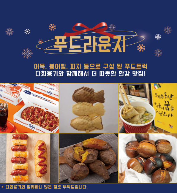 - 어묵, 붕어빵, 피자, 군고구마, 군밤 등으로 구성된 푸드트럭