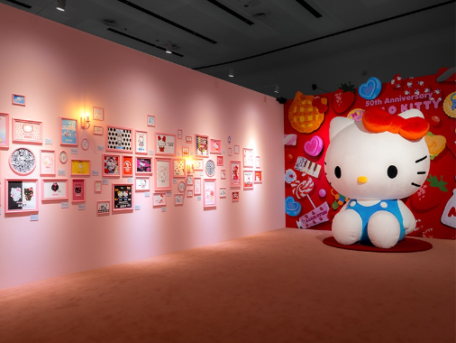 특별전에서는 헬로키티 50주년을 기념하는 다양한 한정판 기념품이 판매됩니다.