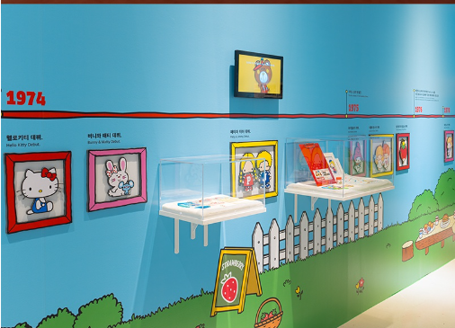 - 헬로키티의 탄생 배경과 성장 과정을 담은 역사관입니다. 초기 디자인부터 현재까지의 변천사를 한눈에 볼 수 있습니다.